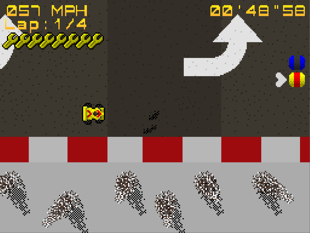 A pit stop minigame will appear between races in the Grand Prix mode, where each player must repair the damage caused to their cars during the previous race.